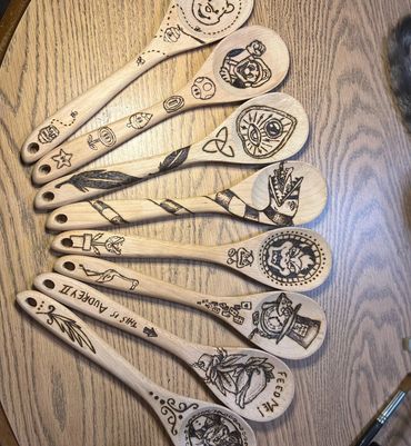 Burn baby! Using a Lichtenberg machine, Mark loves creating these unique patterns on charcuterie boards, wooden spoons, book caddies, coasters, coat racks and much more.
